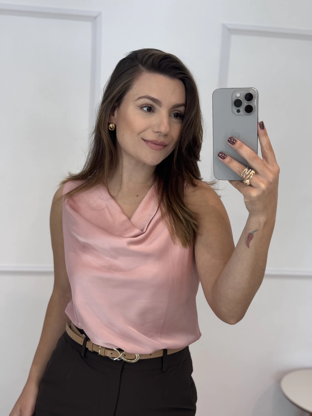 Nossa blusa Brisa é um verdadeiro charme, com a gola caída na frente e modelo de alça ela remete elegância e modernidade, ideal para compor com alfaiataria ou jeans ela vai te acompanhar em momentos especiais e até mesmo um dia comum de trabalho.